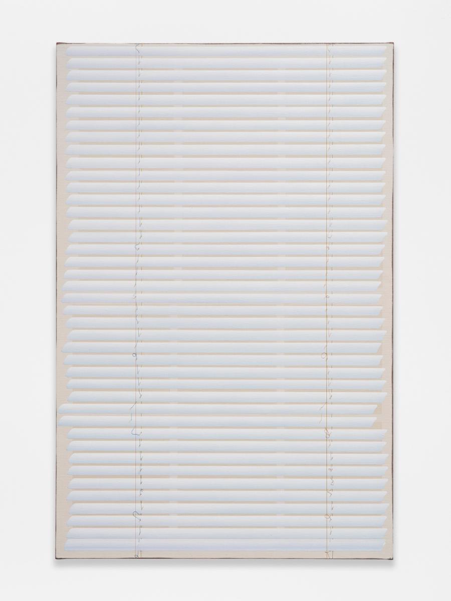 Oil, gesso, and thread on canvas